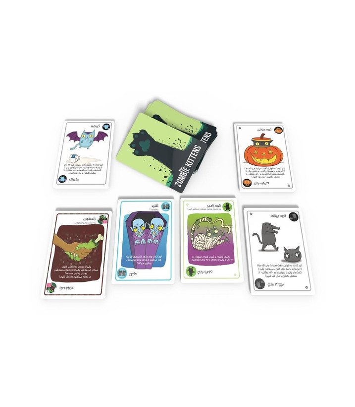 4) کارتها رو بُر بزنین و به هر بازیکن 7 تا کارت بدین. حالا هر بازیکن، یه دستِ 8 کارتی داره (7 تا کارت + 1 کارت "گربهزامبی"). کارتهاتون رو فقط خودتون ببینین؛ اصلاً به دیگران نشون ندین!